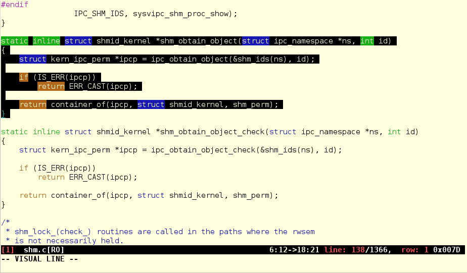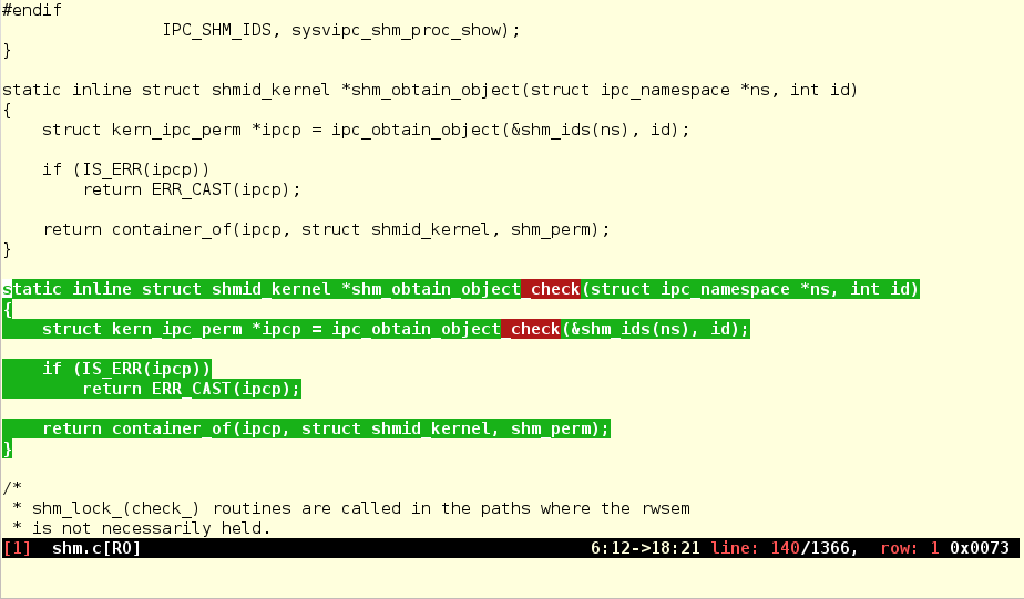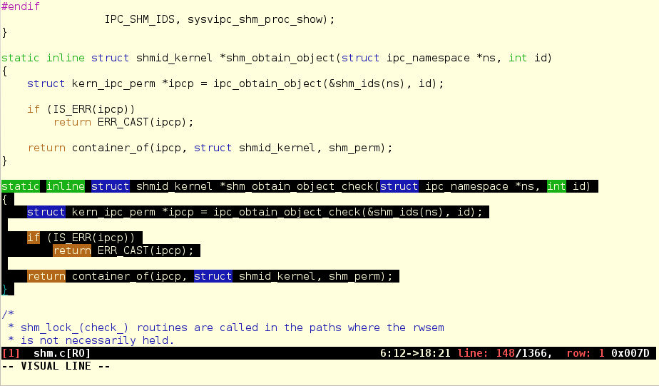 While still in visual mode, press 'gd' to perform diff. Green marks identical text. Red marks differences.
